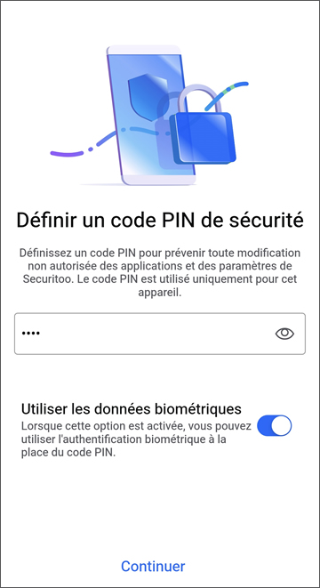 5. Si ce n'est déjà fait vous serez amené à définir un code PIN de sécurité à quatre chiffres, et à le confirmer.