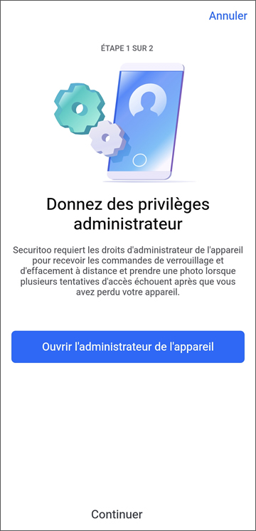 3. La fonction antivol nécessite les droits d'administrateurs de l'appareil pour réaliser des opérations de contrôle à distance. Appuyez sur Ouvrir l'administrateur de l'appareil.