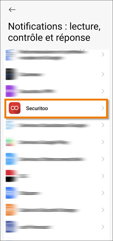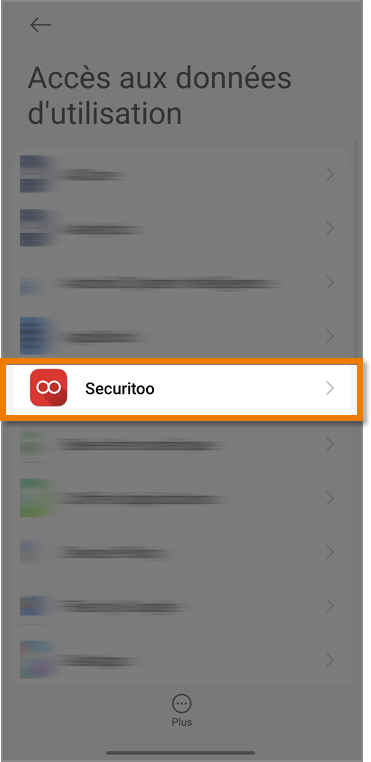 3. Faites défiler la page pour localiser l'application Securitoo.