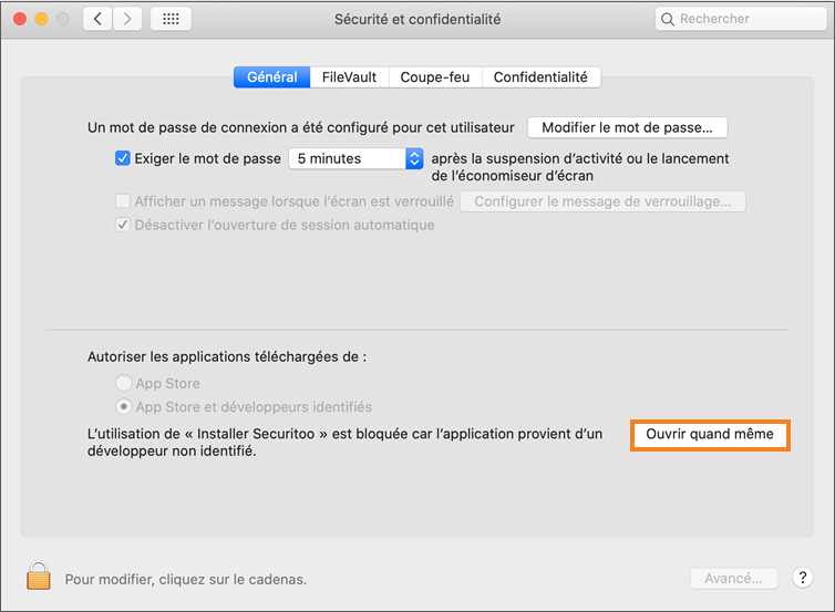 Autoriser Securitoo Mac à s'installer