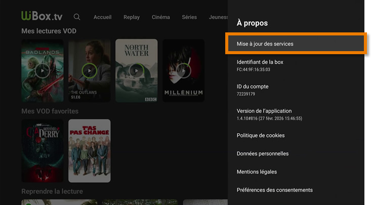 Une mise à jour des services du décodeur WiBox.tv est requise :