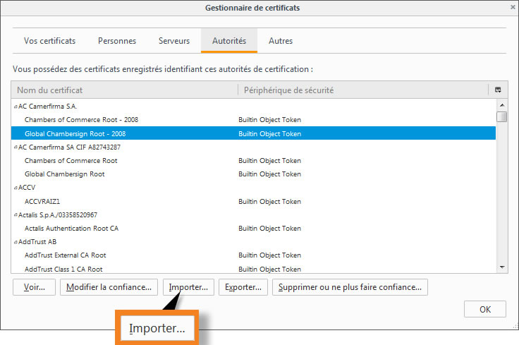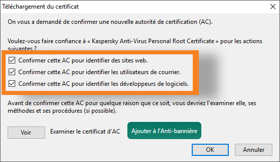 Firefox vérifie systématiquement le certificat du site pour vous assurer son identité. Si un incident est rencontré avec le certificat, Firefox vous affichera un message d'erreur « La connexion n'est pas sécurisée ». Si vous êtes certain du/des site(s visité(s), il se peut que votre navigateur n'ait pas été correctement paramétré lors de l'installation de Securitoo PC. Pour y remédier, suivez les instructions du présent article.