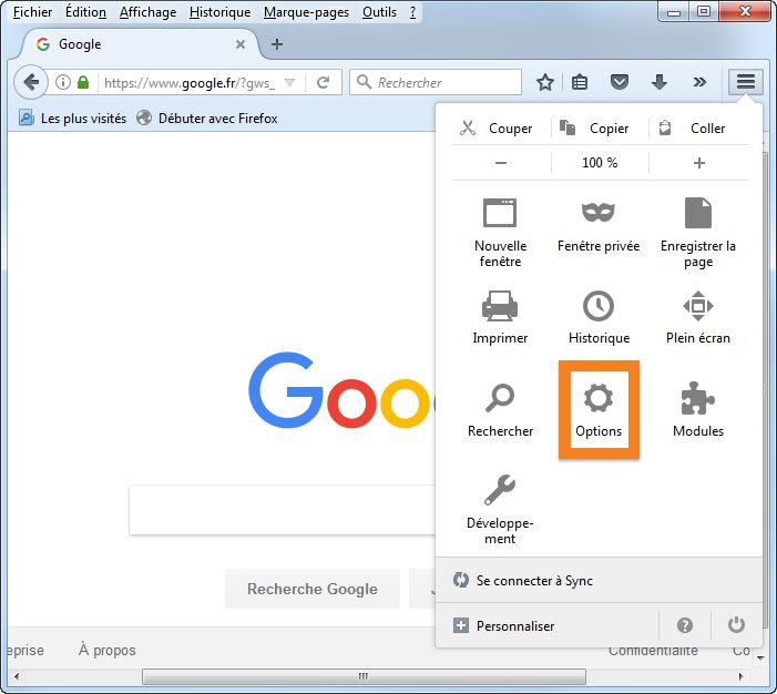 2. Lancez Firefox, cliquez sur l'icône symbolisant le menu