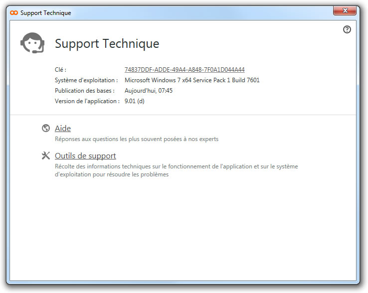 2. Dans le panneau d'accueil, cliquez sur le lien Support Technique.
