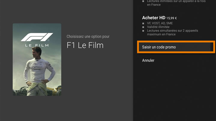 Sur la fenêtre de la location d'un film, appuyez TOUT D'ABORD sur le bouton Saisir un code promo situé au bas de celle-ci...